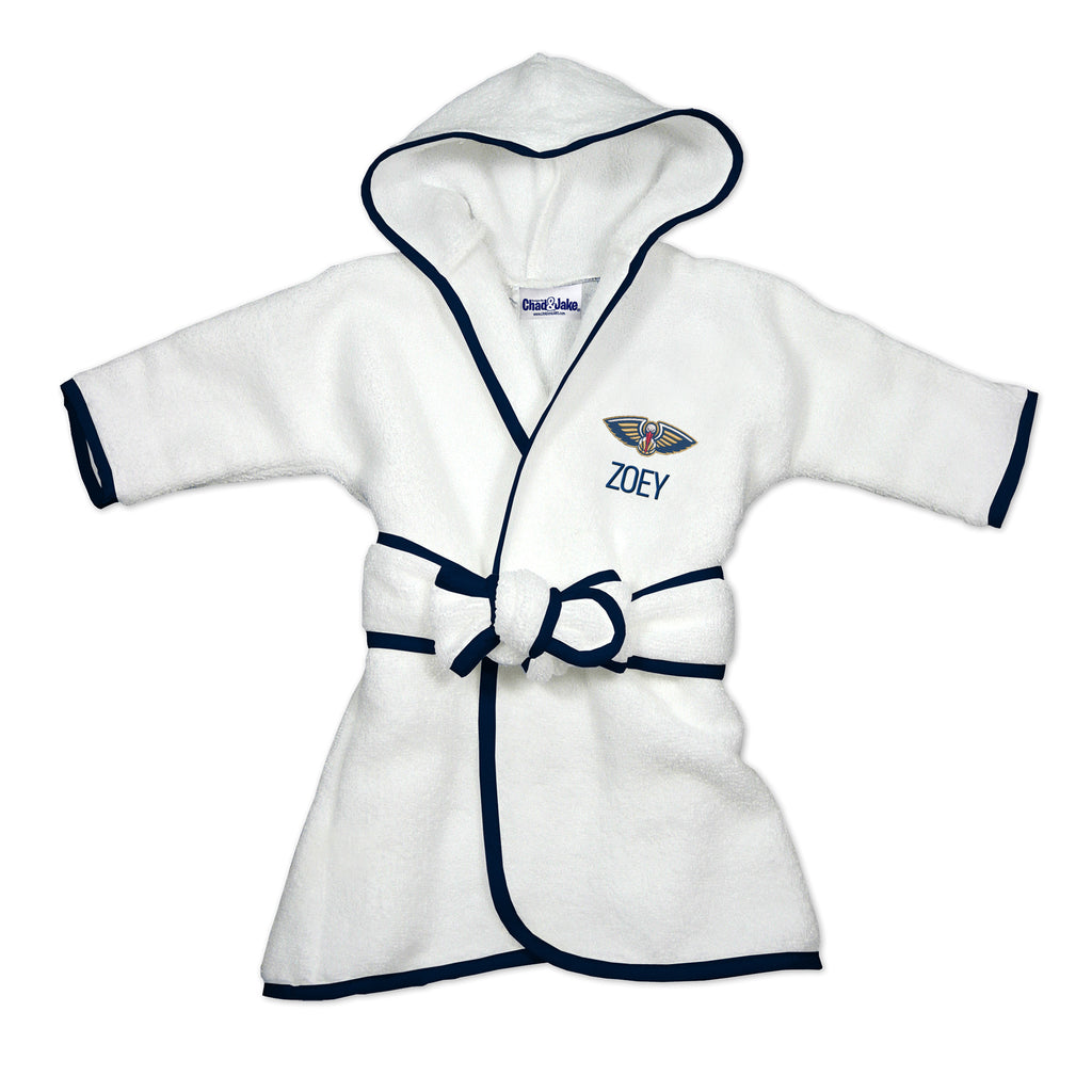 Our Personalized New Orleans Pelicans Infant Robe is a fun and practical accessory for every little Pelicans fan. Each robe is embroidered with the official New Orleans Pelicans logo and your own little one’s name or nickname. What a great way for even the youngest fans to support their team and show Pelicans pride! Kids can wrap up after a bath or shower, cover up and dry off after swimming, or relax at home in the comfort of this plush Pelicans robe sized just for them.