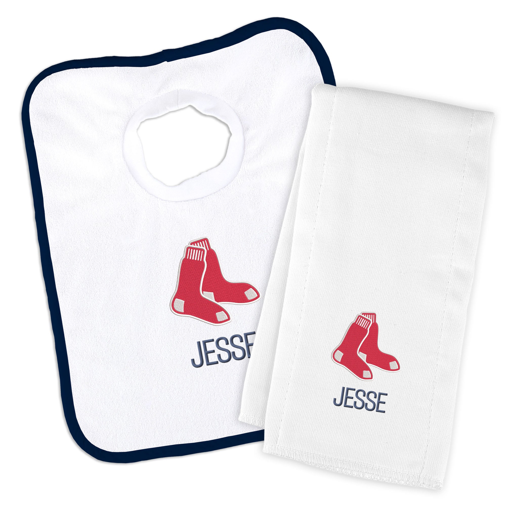 Our Personalized Boston Red Sox Bib and Burp Cloth Set is a thoughtful and useful gift for every baby Red Sox fan. The Red Sox burp cloth is generously sized and made of soft, absorbent 100% cotton, and the Red Sox bib has a soft, stretchable cotton neck hole for baby’s comfort. Parents, the bib slips easily over your baby's head and features a soft, gently gathered stretch cotton neck hole for maximum comfort; also, the burp cloth is a must-have asset.
