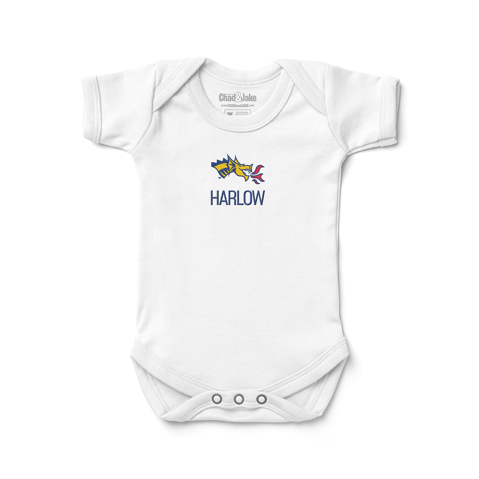 This bodysuit is embroidered with the Drexel Dragons logo on the front, and can be personalized with your little one's name, initials, or nickname under the logo. This personalized bodysuit will let everyone know where your allegiance lies.