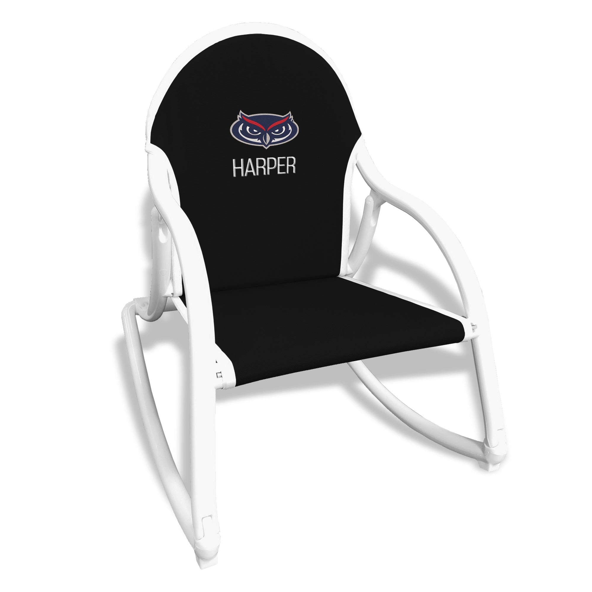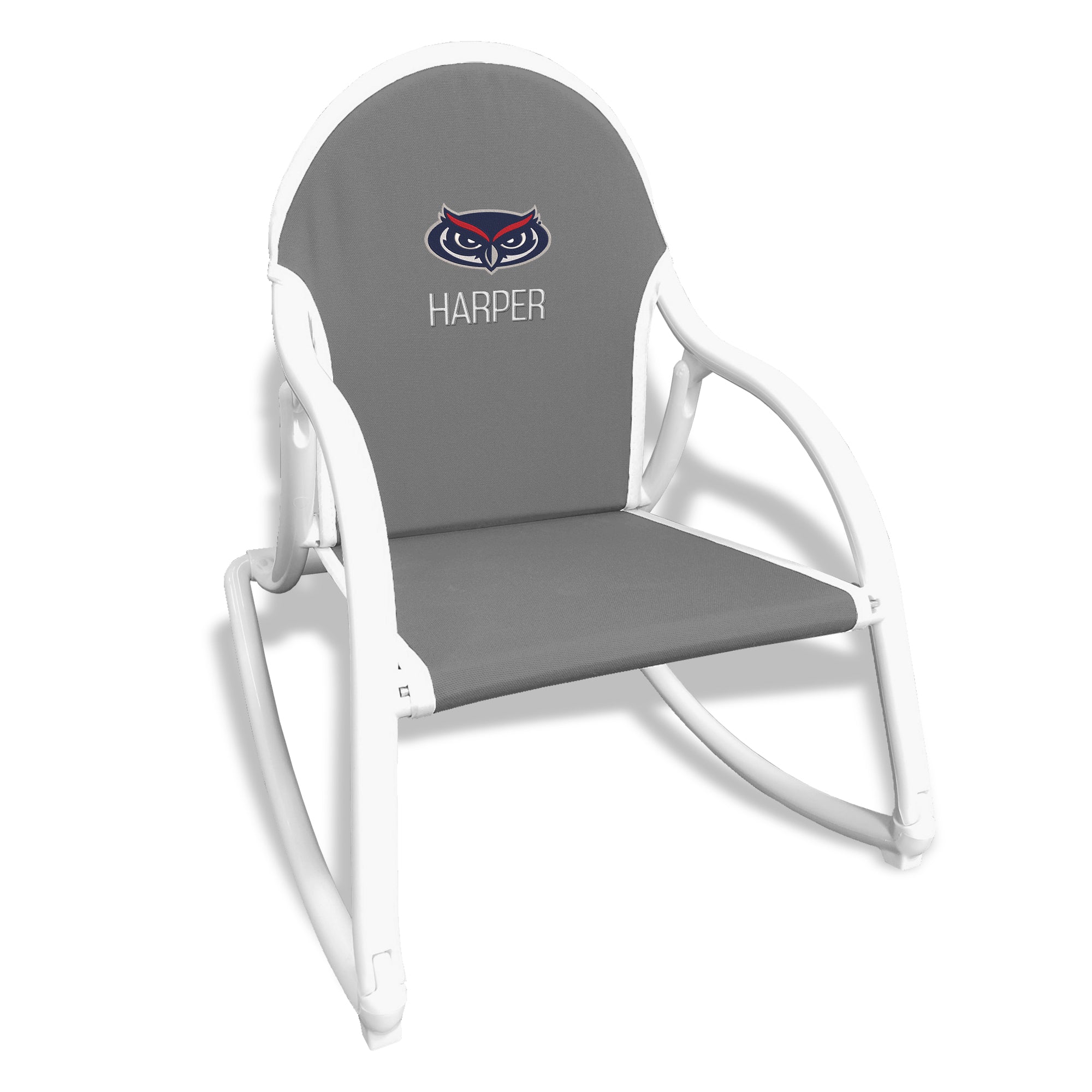 Our kid-sized Personalized FAU Owls Rocking Chair will be the best seat in the house (and everywhere else!). This FAU chair is not only super comfortable, but also foldable and lightweight, making it easy to transport from room to room or put away for storage. The adult weight fabric and sturdy construction ensure that your little Owls fan will be both comfortable and safe. The rockers are 3 inches wider than the seat, so the Owls chair is extra stable, and foot pads under the fronts of the rockers hold the chair steady so toddlers can safely climb in to sit. This Owls rocker is also 100% water-safe, so it can be used outside in the yard, at the park, at a game or even at the beach!