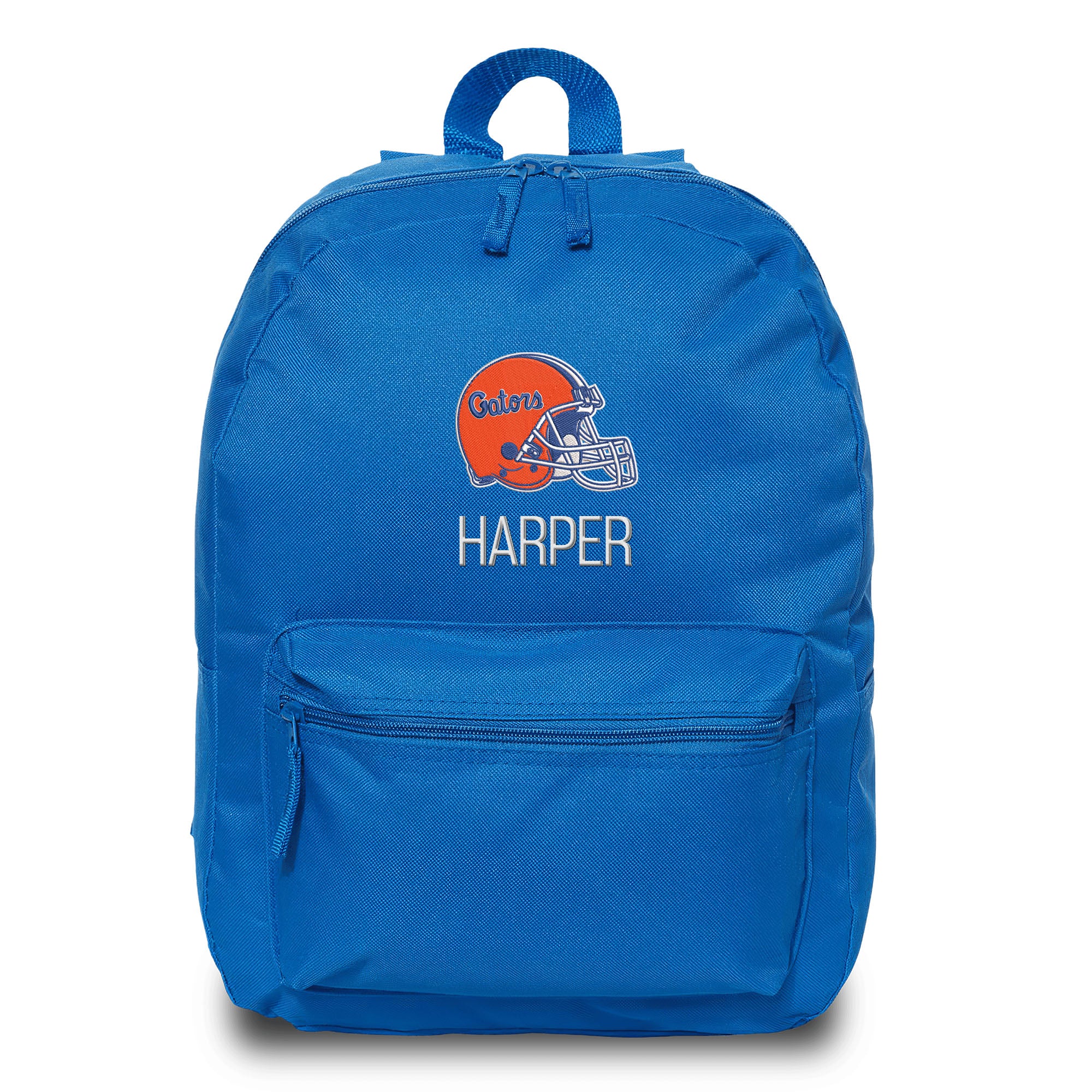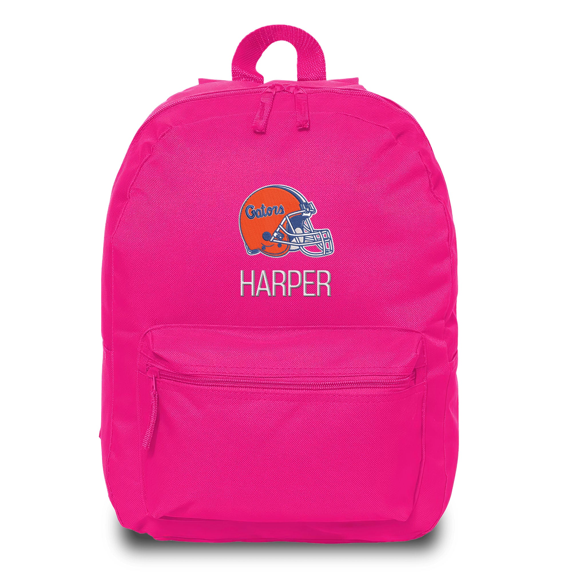 This Florida Gators backpack is the perfect way for your child to show off their fandom wherever they go! With padded adjustable straps and an extra front zipper compartment, this backpack has everything your little one needs. This bag is embroidered with the Florida Gators logo and your little one’s name or nickname underneath! This backpack measures 16” tall.