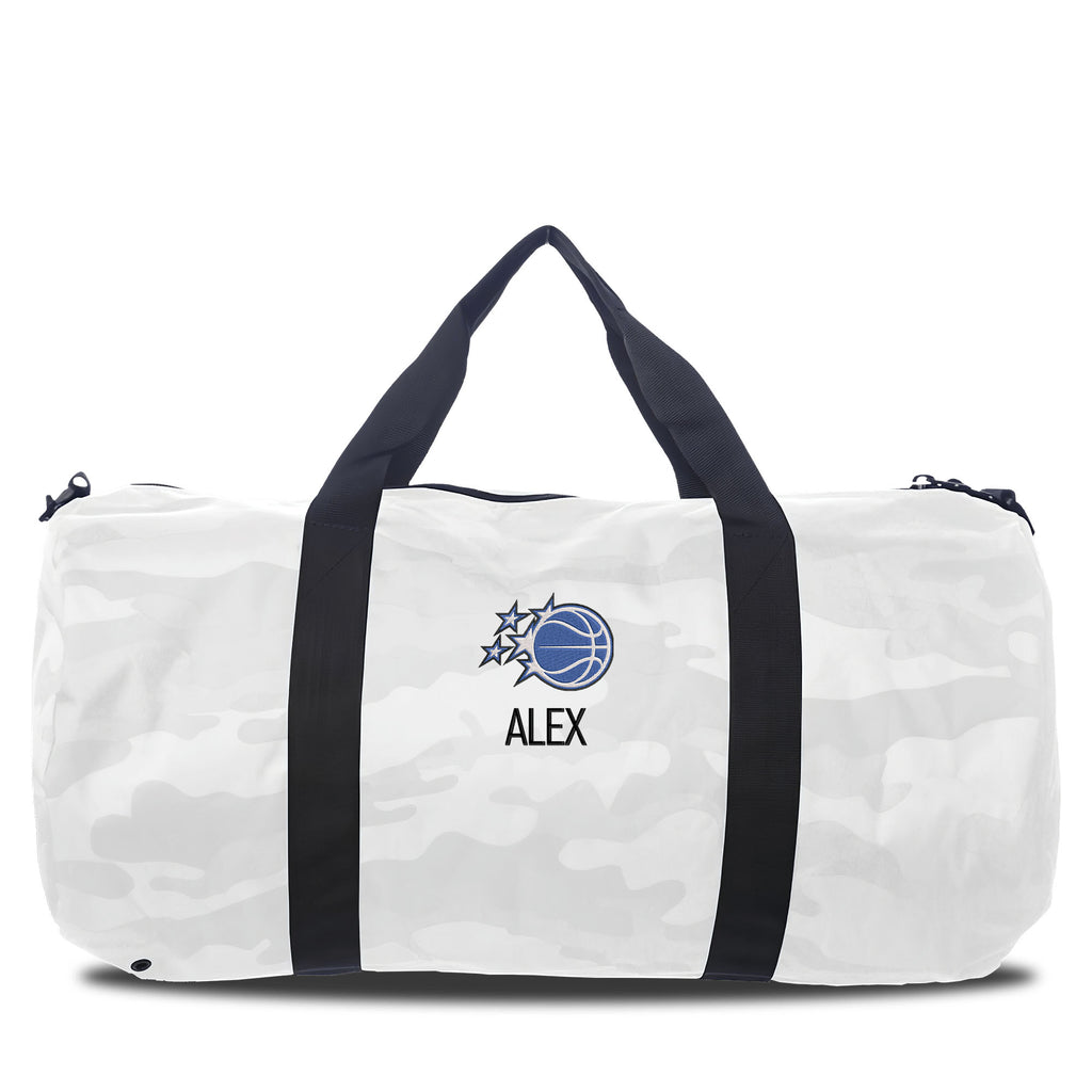 Gear up with pride using this high-quality, officially licensed Orlando Magic duffel bag. At 20.5" wide by 10.5" tall, it offers ample space for all your essentials, whether for the gym, travel, or the next big game. Designed for durability, it includes a spacious interior pocket to keep smaller items secure. Featuring both sturdy carrying handles and a removable shoulder strap, this duffel bag ensures comfortable and versatile carrying options. Personalize it with your name or a favorite phrase for a unique touch. Show your support for the Orlando Magic wherever you go with this stylish, premium duffel bag!