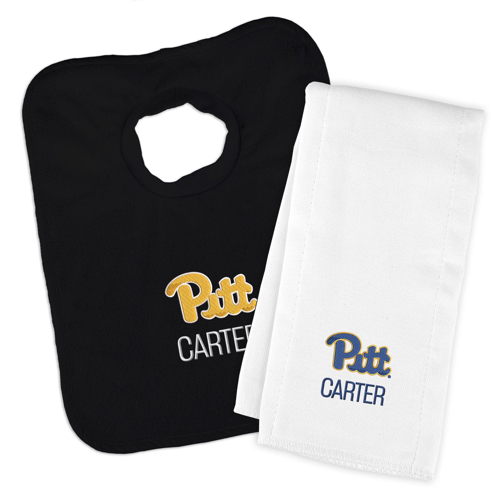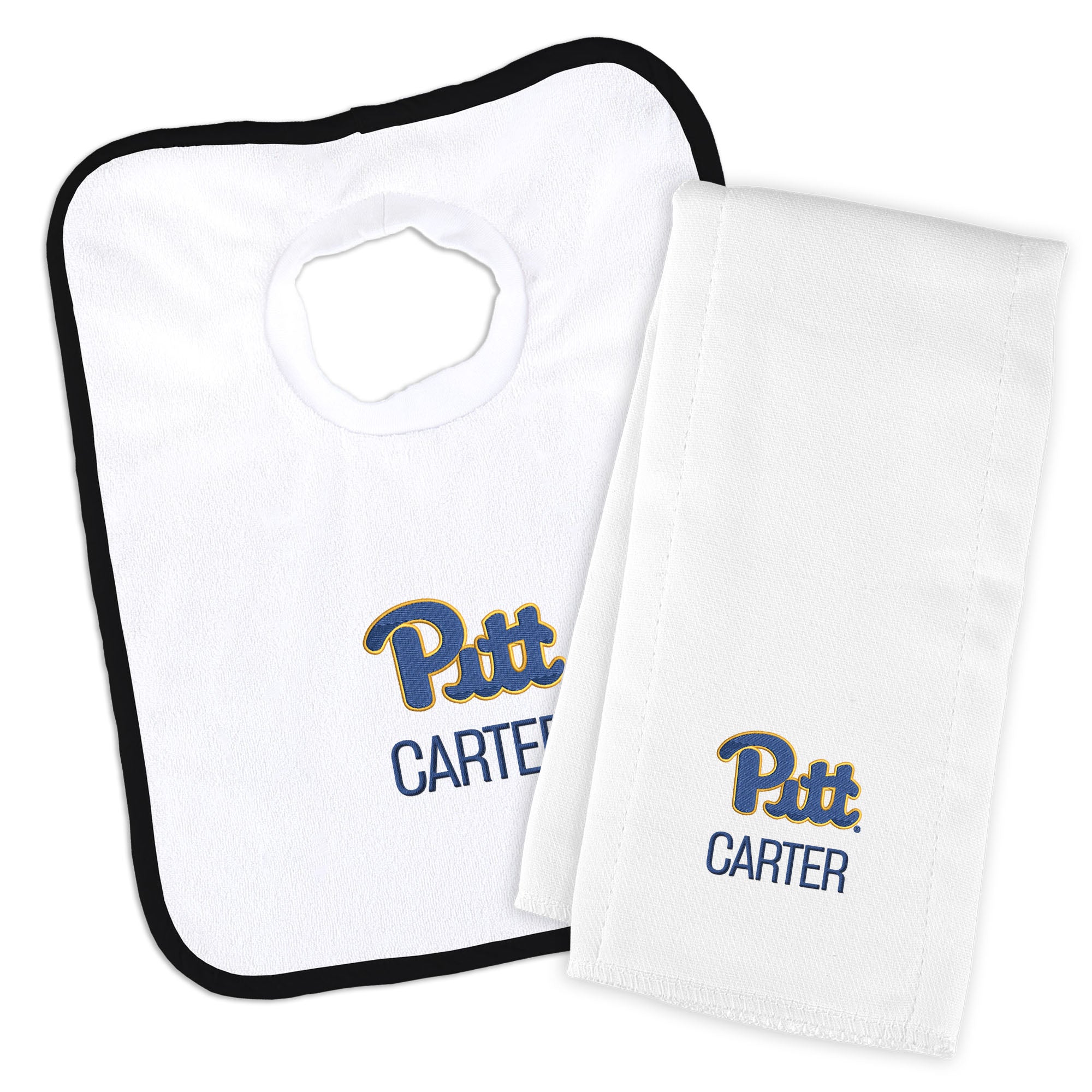 Personalized Pitt Panthers Bib and Burp Cloth Set