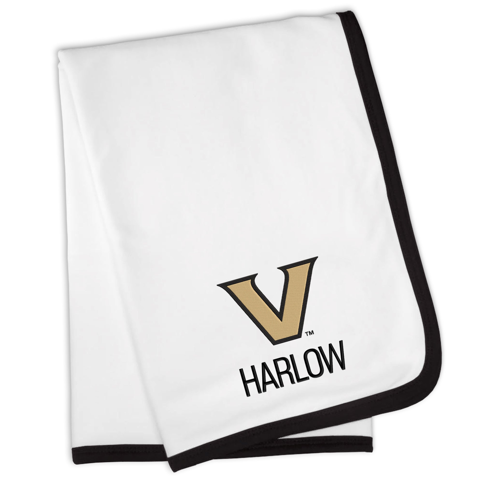 Our Personalized Vanderbilt Commodores Blanket is sized just right for a baby fan. Constructed from super soft 100% cotton jersey knit and trimmed in Commodores team colors, this blanket is perfect for walks in the stroller or swaddling at bedtime. Each blanket is embroidered with the official Commodores logo and your little one’s name or nickname.