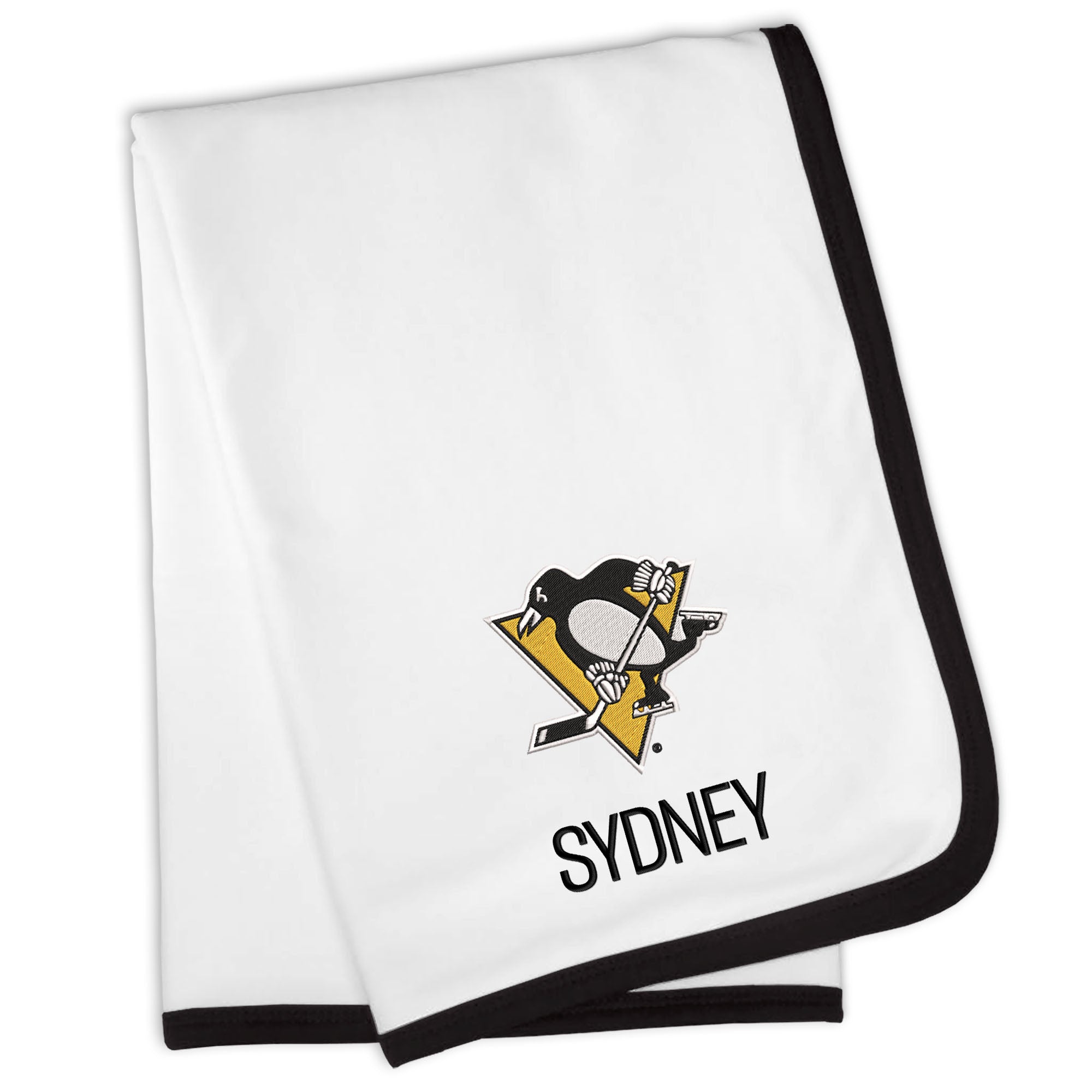 The littlest fan in your life will love snuggling up to watch some hockey with their very own personalized blanket. Each Penguins blanket measures 30" x 36" and is customized with a name or phrase of your choice making it the perfect size for little ones to snuggle with. This blanket is also great to have on hand in the car or anywhere your little one wants to have something to wrap up in while they show their team spirit! The blanket is 100% cotton and is machine washable and dryer safe.