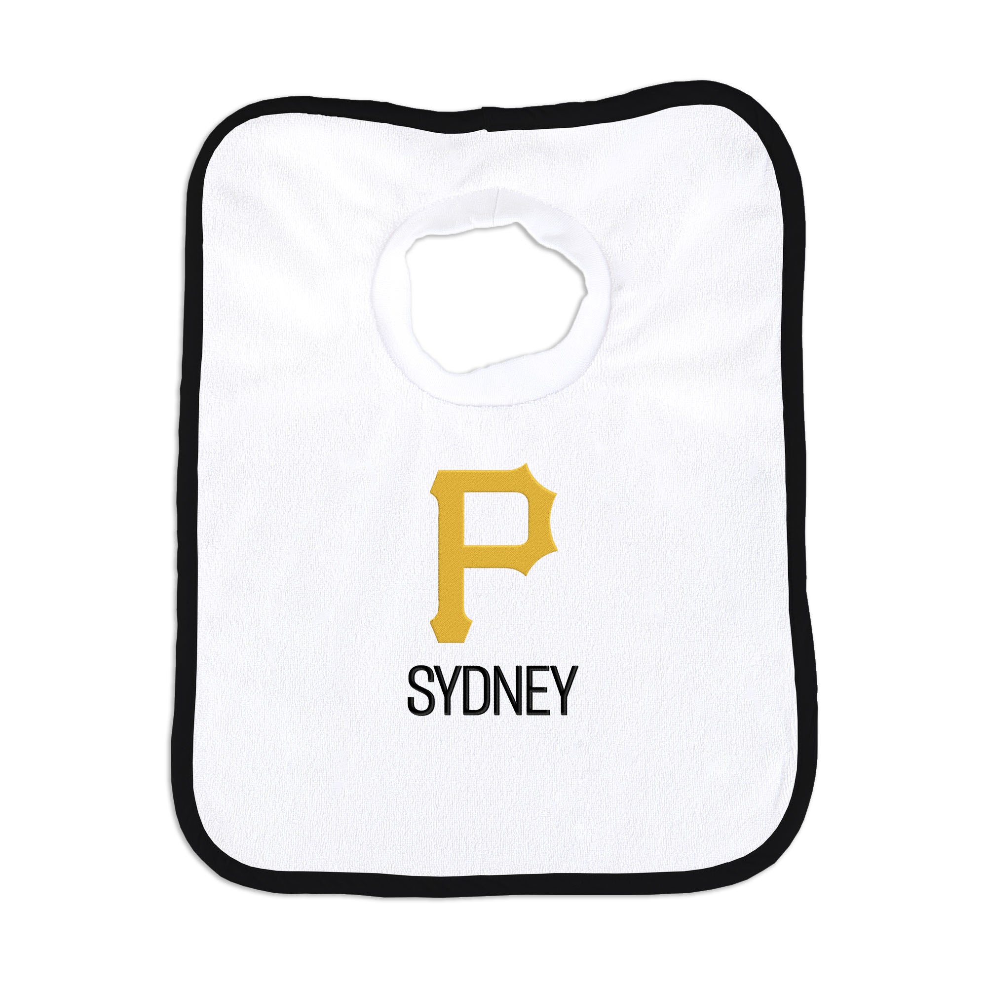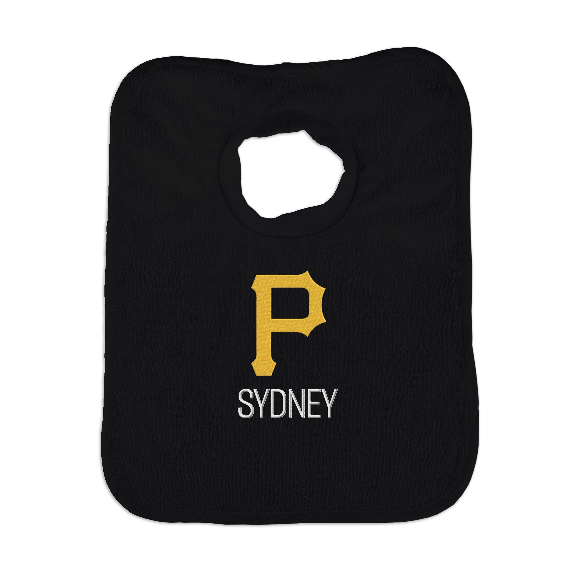 Enhanced with an embroidered Pittsburgh Pirates logo, this bib proudly displays your family's passion for the game. Additionally, personalize the bib with an embroidered name or phrase, adding a unique touch to your baby's Pirates-themed collection.