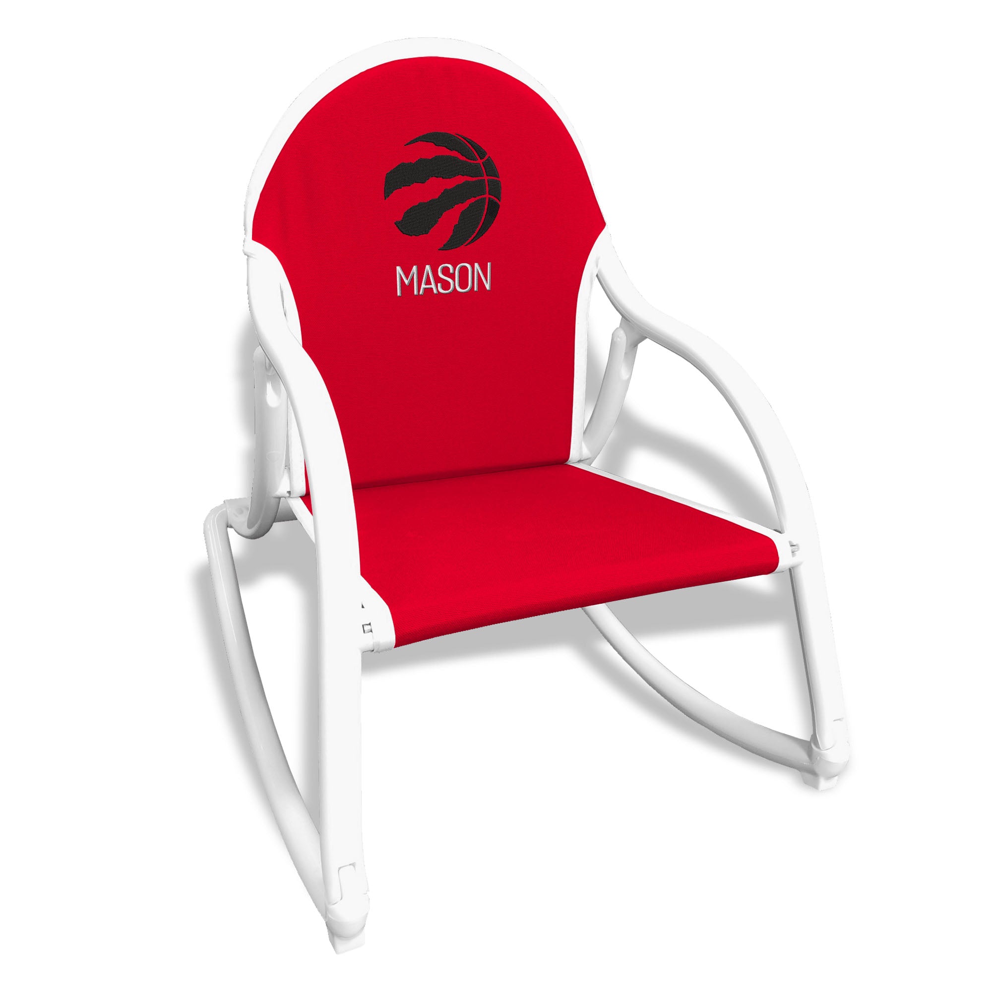 Our kid-sized Personalized Toronto Raptors Rocking Chair will be the best seat in the house (and everywhere else!). This Raptors chair is not only super comfortable, but also foldable and lightweight, making it easy to transport from room to room or put away for storage. The adult weight fabric and sturdy construction ensure that your little Raptors fan will be both comfortable and safe. The rockers are 3 inches wider than the seat, so the Raptors chair is extra stable, and foot pads under the fronts of the rockers hold the chair steady so toddlers can safely climb in to sit. This Raptors rocker is also 100% water-safe, so it can be used outside in the yard, at the park, at a game or even at the beach!